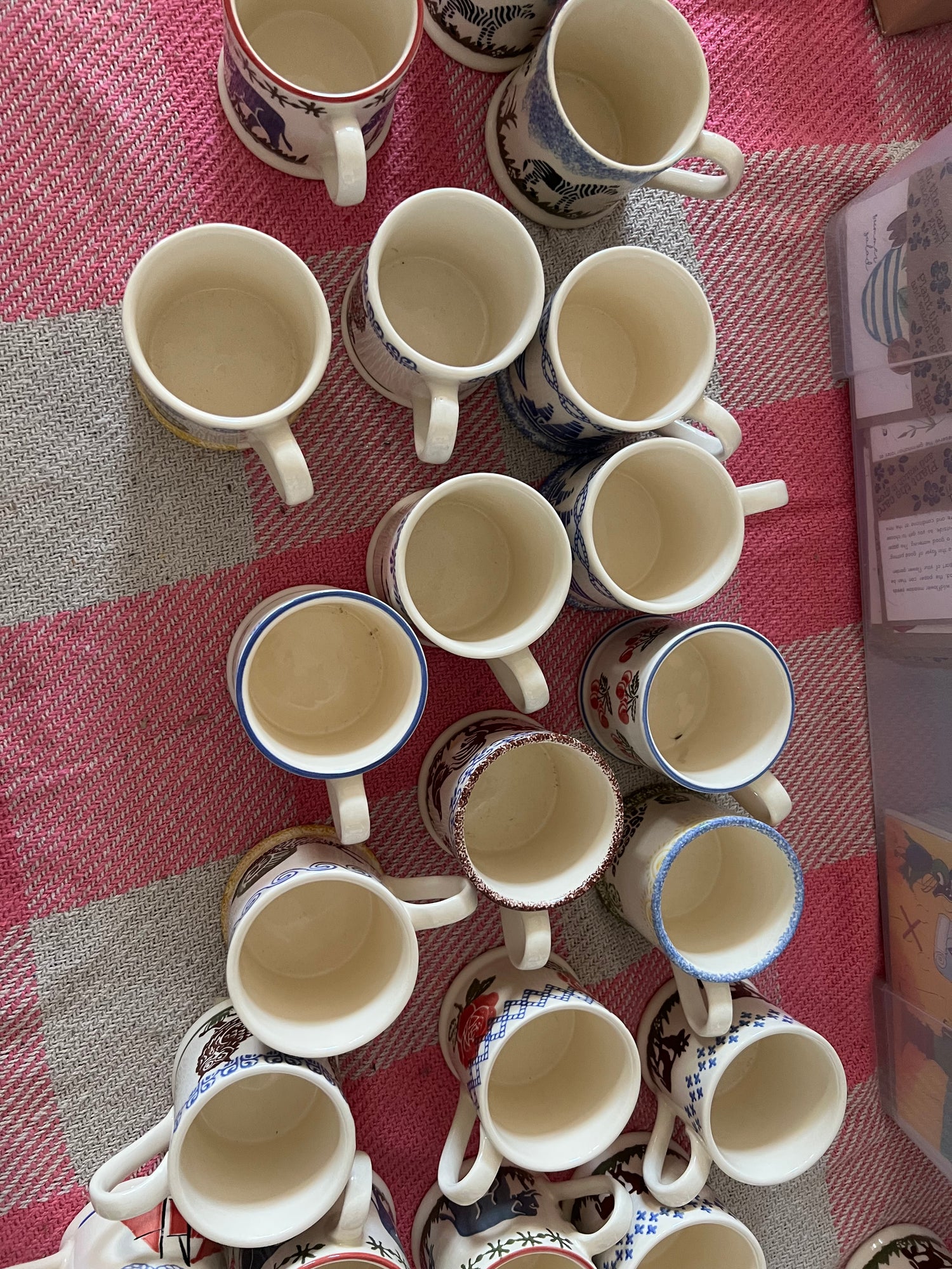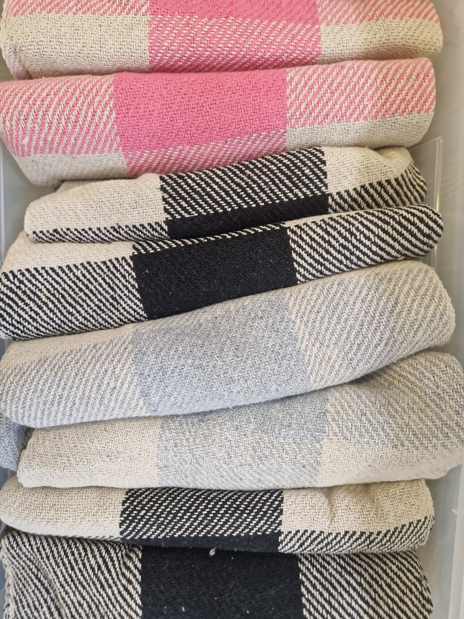 All products with a pink chequered blanket background. Just for aesthetics!